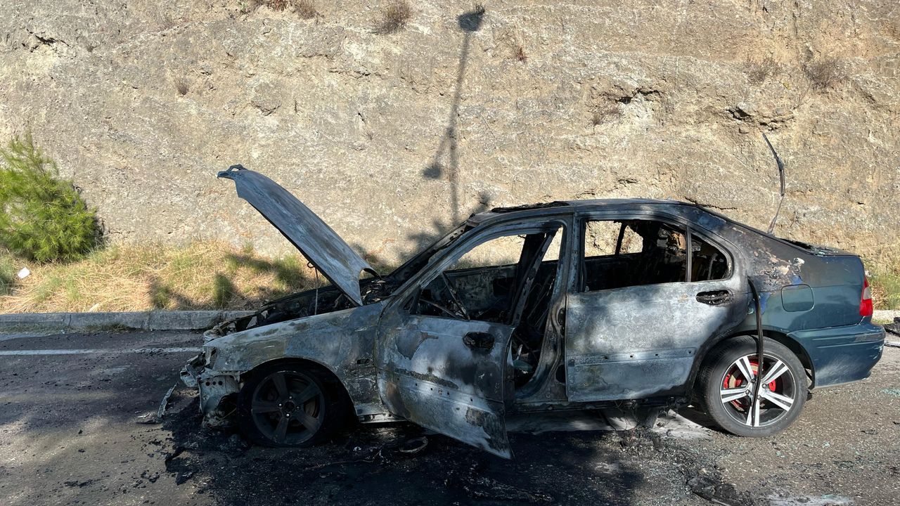Hatay'da sürücüsünün 20 gün önce satın aldığı Honda marka otomobil, seyir halindeyken yanarak kullanılmaz hale geldi.