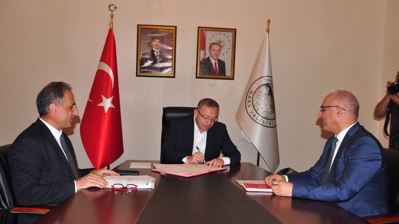 Tarım ve Orman Bakanlığı ile Ziraat Bankası işbirliğinde, küçükbaş hayvancılığını desteklemek amacıyla hayata geçirilen "Köyümde Yaşamak İçin Bir Sürü Nedenim Var" projesinin Kars'ta bu yılda sürdürülmesi amacıyla Vali Ziya Polat başkanlığında Tarım ve Orman İl Müdürü Enver Aydın ve Ziraat Bankası Müdürü Cebbar Boyracı'nın katılımıyla protokol imzalandı.