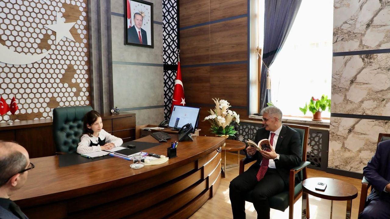 Makam koltuğuna oturan küçük Vali, geleceğe dair umutlarını ve çocuklar için dileklerini dile getirerek anlamlı bir farkındalık oluşturdu.