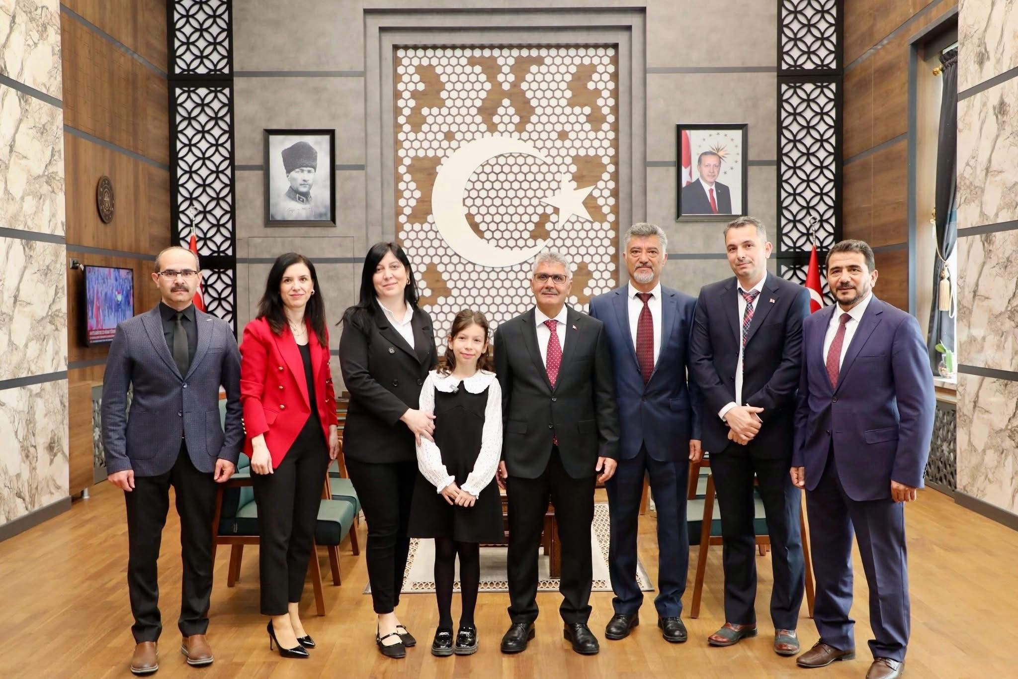 Vali Cahit Çelik, minik Vali Zeynep Su Yücel’e, Niğde’nin önemli şahsiyetlerinden Hazım Tepeyran’ın “Küçük Paşa” adlı eserini hediye etti.