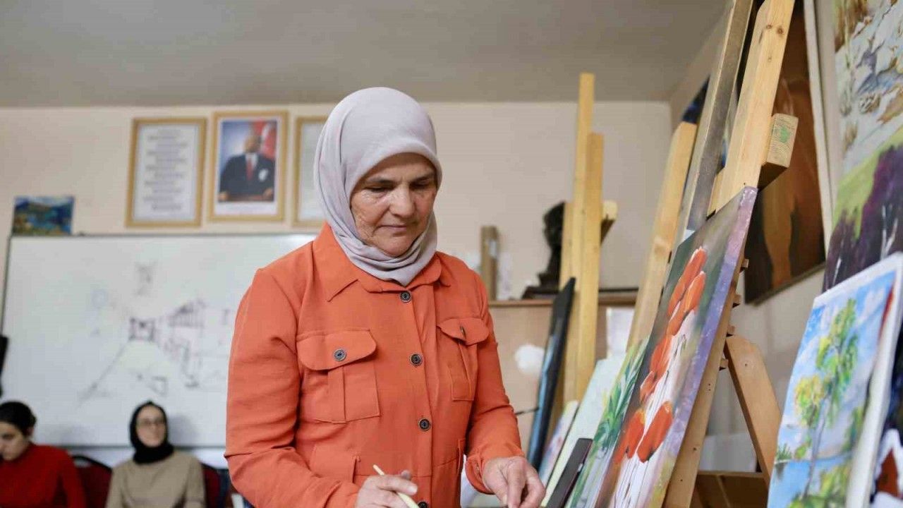 Ağrı’da yaşayan ev hanımı Zihniye Yalçın, Halk Eğitim Merkezi’nde açılan kurs sayesinde 62 yaşında yıllardır içinde ukde kalan resim yapma hayaline kavuştu.