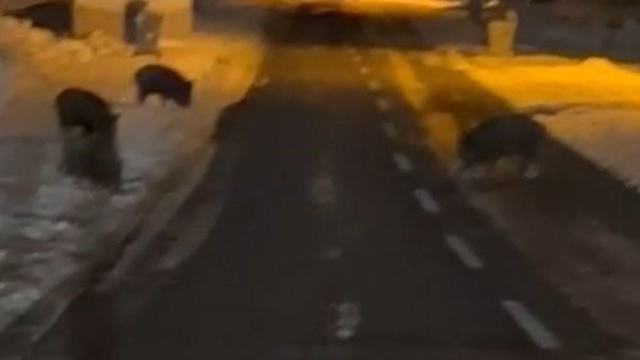 Yeşilyurt Mahallesi Dağdaylı mevkiinde kar yağışı nedeniyle yiyecek bulmakta zorlanan yaban domuzları yerleşim yerine indi. Yaban domuzlarını gören vatandaş, beklenmedik bir şekilde karşılarına çıkan yaban domuzlarını görüntüledi. Domuzların bölgede dolaştıktan bir süre sonra yerleşim yerinden uzaklaştığı cep telefonu kamerasına yansıdı.