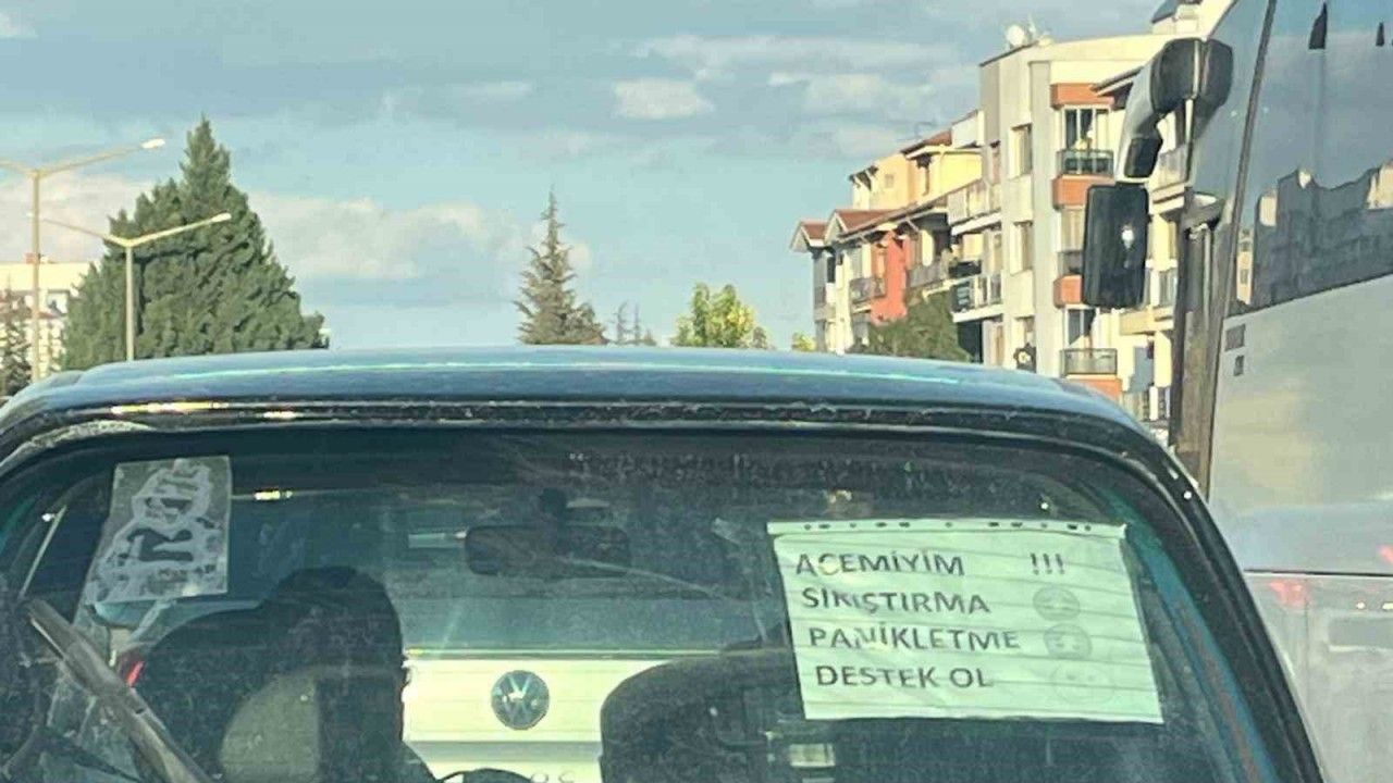 Eskişehir’de kadın sürücünün otomobilinin arka camına astığı "acemi sürücü" notu o sırada trafikte olan sürücüleri gülümsetti.