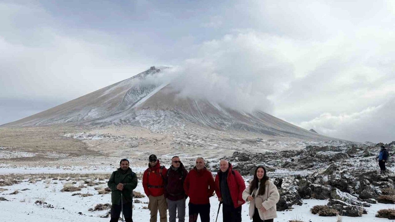Tırmanış, yerel rehber Cuma Saltık öncülüğünde başladı. Dağcıların karla kaplı zorlu araziye rağmen yürüyüşlerini sürdürdüğü görüldü.
