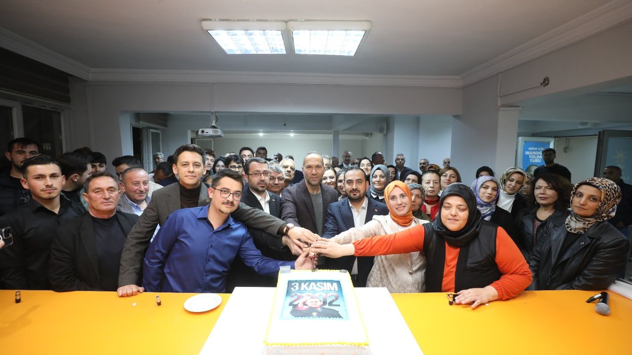 Parti teşkilatı, pasta kesiminin ardından hatıra fotoğrafları çektirdi.