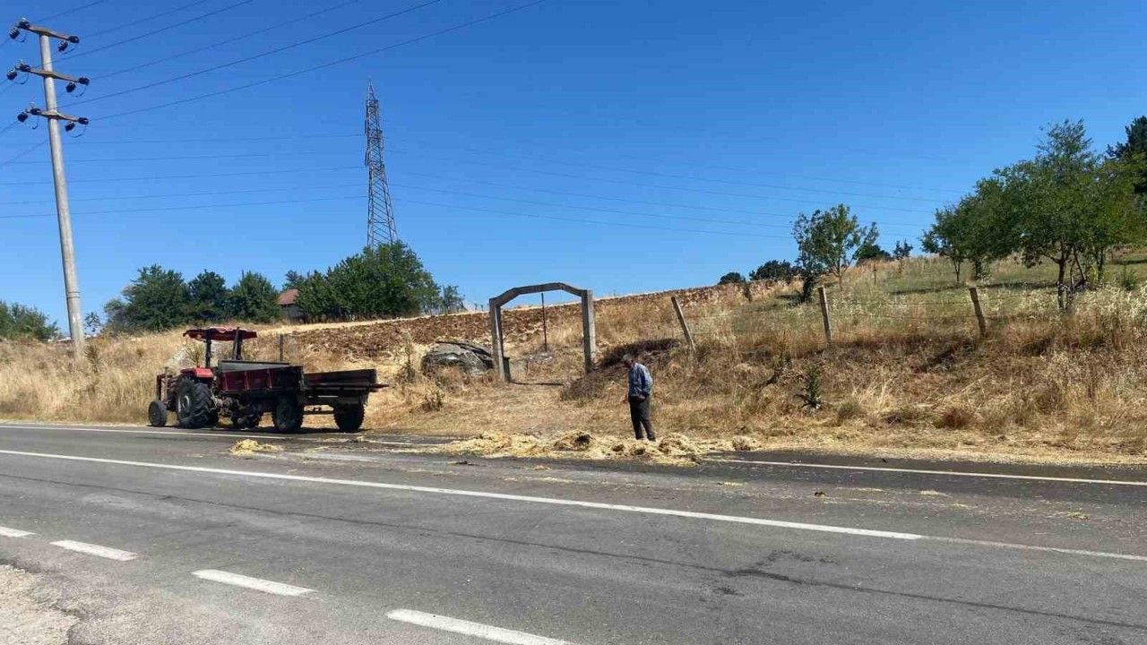 Bilecik’in Pazaryeri ilçesinde tarladan toplanan saman balyalarını taşıyan Adem K. idaresindeki traktörün römorkunda henüz belirlenemeyen bir nedenle yangın çıktı. Alevler kısa sürede saman balyalarını sardı, ortalık bir anda dumanla kaplandı. Yangını fark eden çevredeki vatandaşlar, ilk müdahaleyi yaparak alevlerin büyümesini engellemeye çalıştı. Olay yerine hızla Pazaryeri Belediyesine bağlı itfaiye ekipleri ile polis ekipleri sevk edildi. Kısa sürede olay yerine ulaşan itfaiye, yangını çevreye sıçramadan kontrol altına alarak söndürdü.
