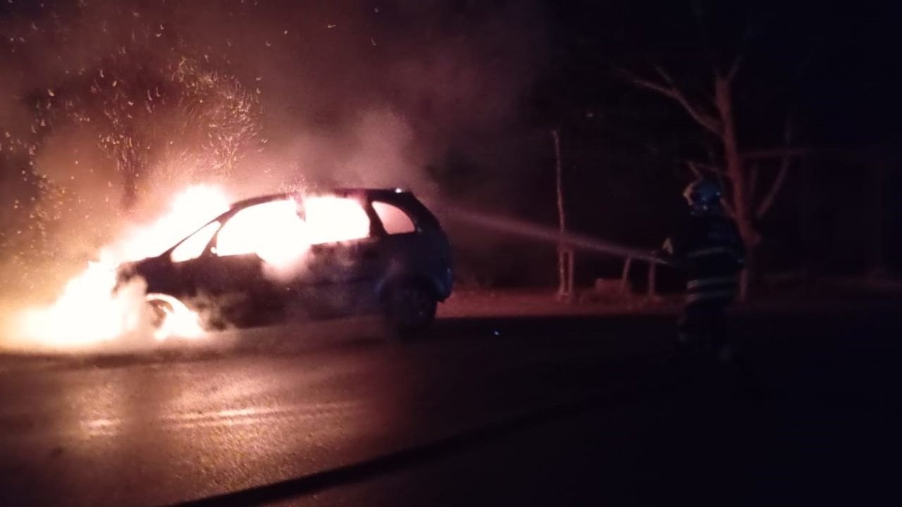 Hatay’da alevlere teslim olan otomobil yanarak kullanılmaz hale geldi.