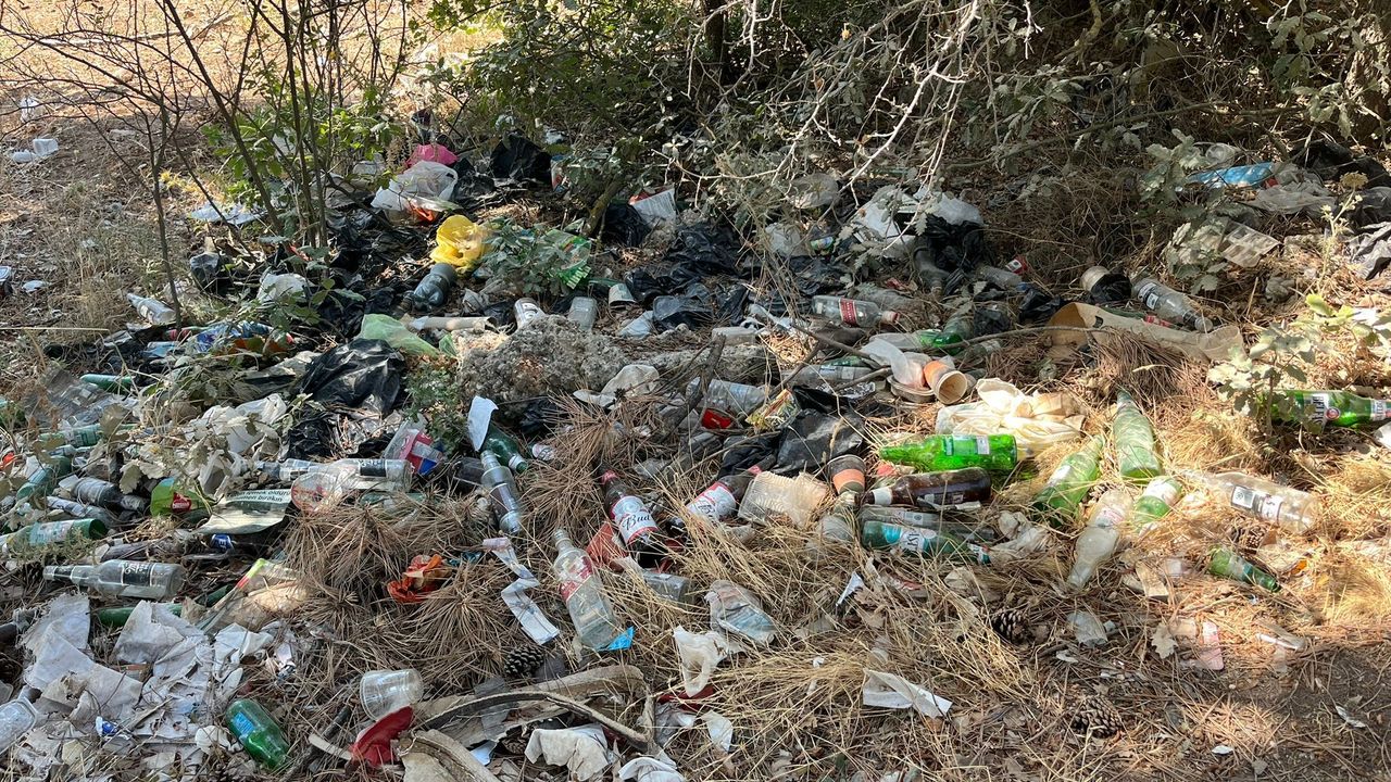 Bilecik'te alkol alan şahısların, atıkları ile ormanlık alanı adeta çöplüğe çevirmeleri tepki topluyor.