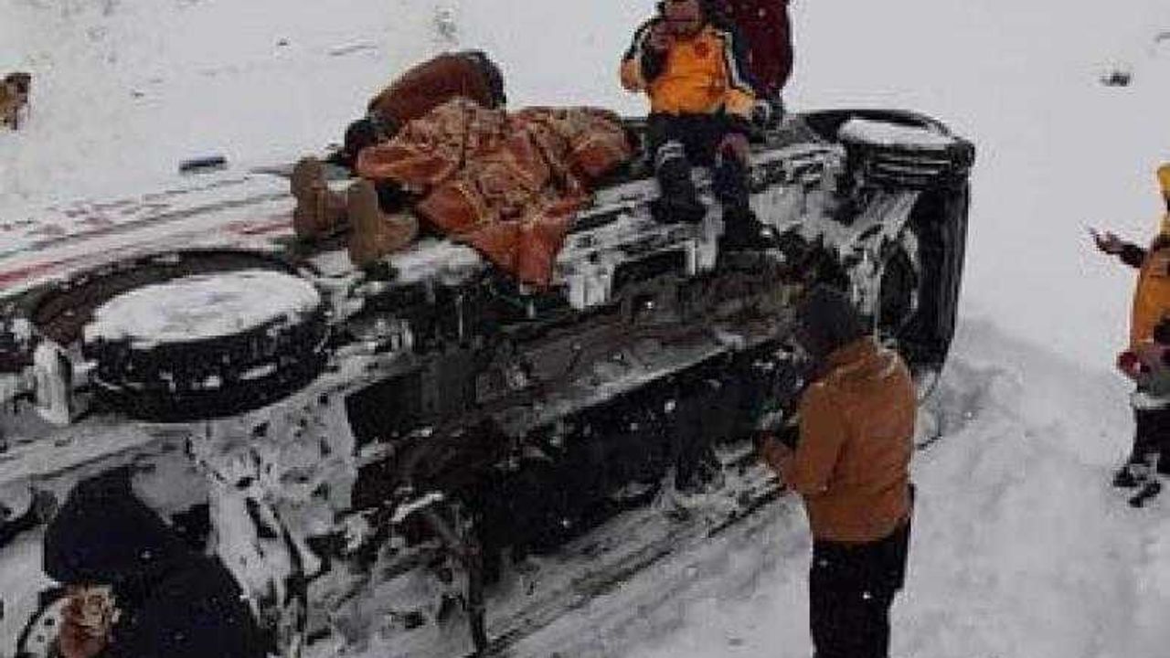 NİĞDE'de vakadan dönen ambulans kötü hava şartları nedeniyle devrildi. Kazada 3 sağlık görevlisi yaralandı.