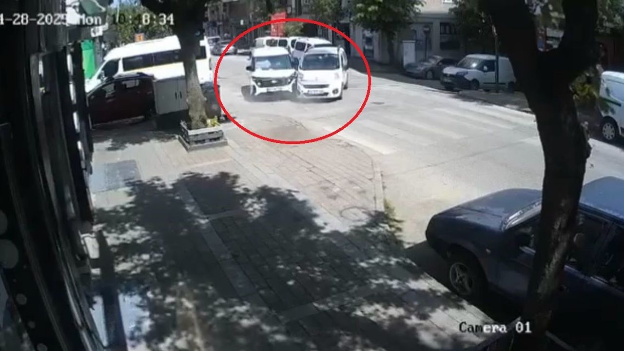 Bursa'nın Osmangazi ilçesinde tali yoldan ana yola dikkatsiz çıkan araç kazaya sebep oldu. Kaza anı bir iş yerinin güvenlik kamerasına yansıdı.