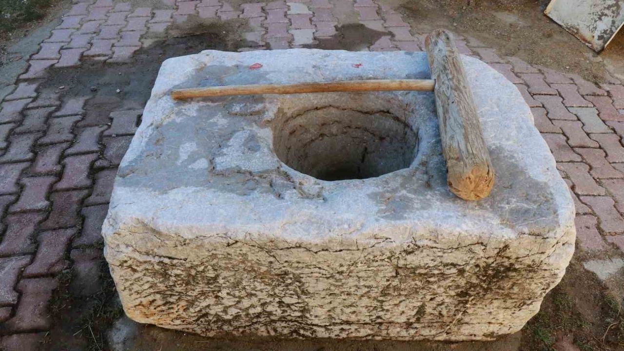 Konya'da yaklaşık 300 yıllık yekpare mermer dibek, geçmişten bugüne uzanan kültürel mirasın yaşatılmasına katkı sağlıyor.