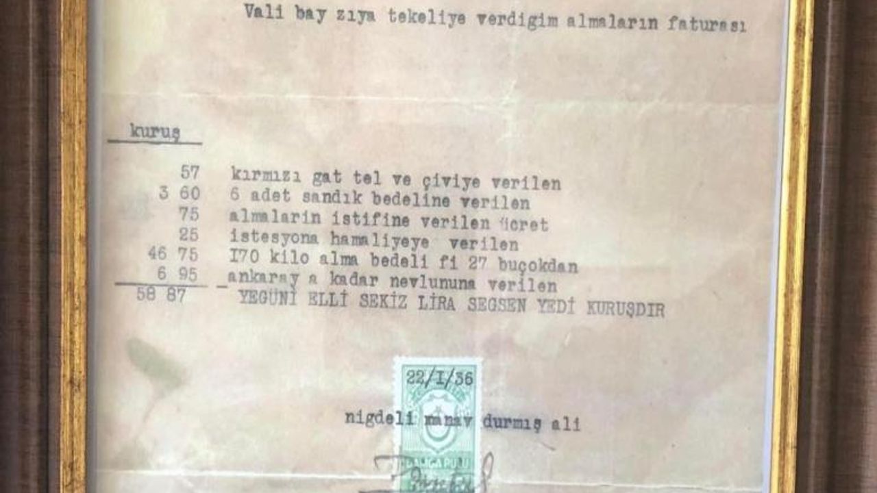Atatürk'ün Niğde'den aldığı elmanın faturası