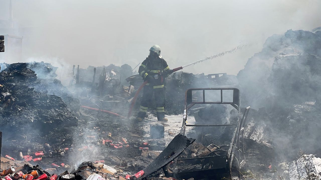 Atık malzemeler alev aldı, dumanı gökyüzünü kapladı