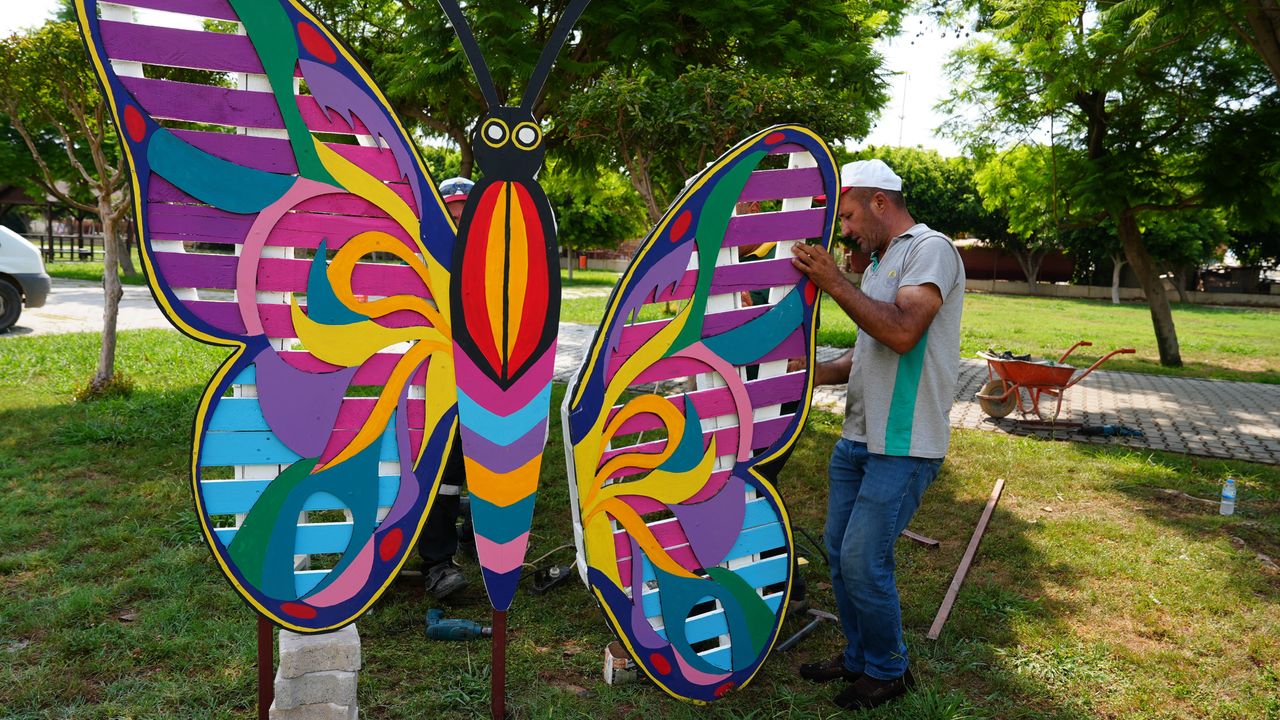 Mersin'in Erdemli ilçesinde belediye ekipleri, kullanılmayan ve atıl durumdaki malzemeleri dönüştürerek park ve bahçelere estetik bir görünüm kazandırıyor.