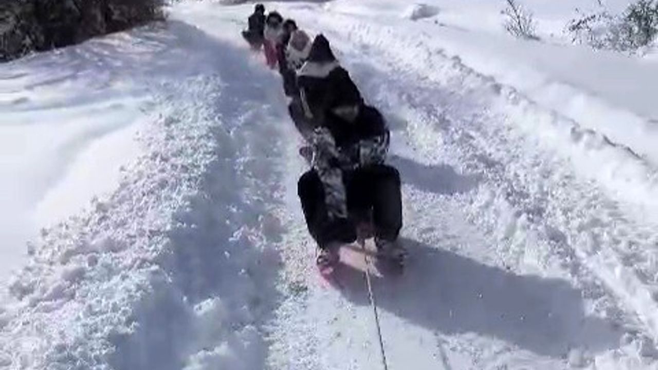 Karabük’ün Eflani ilçesinde etkili olan kar yağışı sonrası kar kalınlığı yer yer 1 metreye ulaştı. İlçeye bağlı Karlı köyünde Abdullah Kamçıcı isimli şahıs ATV’nin arkasına bağladığı kızaklarla gençlere kayak keyfi yaşattı.