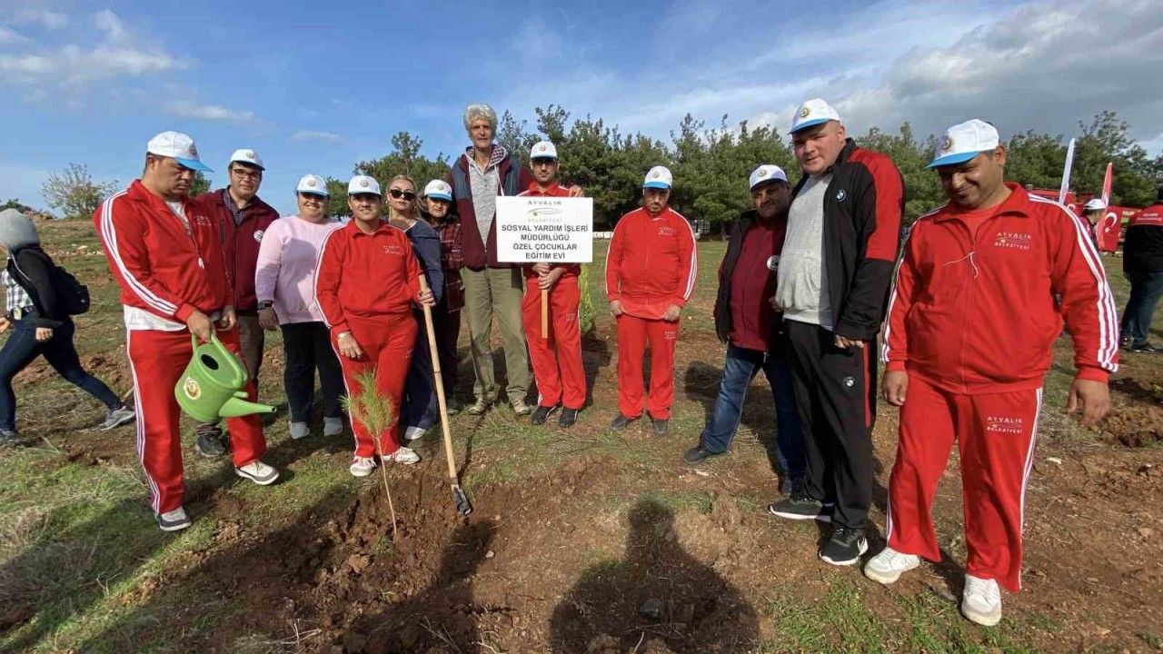 Balıkesir’in Ayvalık ilçesinde, 11 Kasım’da yapılması planlanan ancak olumsuz hava şartları nedeniyle bugüne ertelenen "Şahidimiz Toprak, İmzamız Fidan, Sevdamız Yeşil Vatan" temasıyla düzenlenen ağaç fidanı etkinliği Kaymakam Hasan Yaman’ın da katılımıyla gerçekleşti.