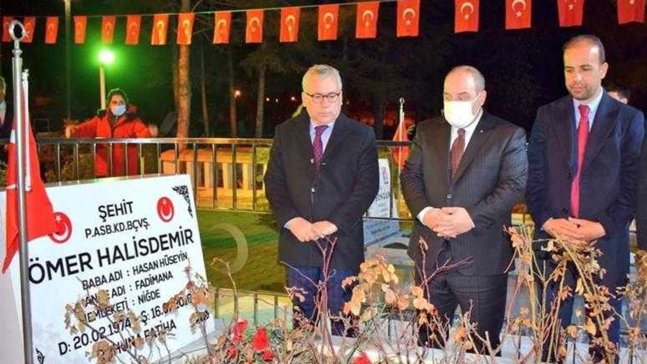 Sanayi ve Teknoloji Bakanı Mustafa Varank, 15 Temmuz Kahramanı Ömer Halisdemir'in kabrine ziyarette bulundu. Bir takım incelemeler ve açlışlarda bulunmak üzere Niğde'ye gelen Bakan Varank, 15 Temmuz Kahramanı Ömer Halisdemir'in kabrini ziyaret ederek dua okudu.