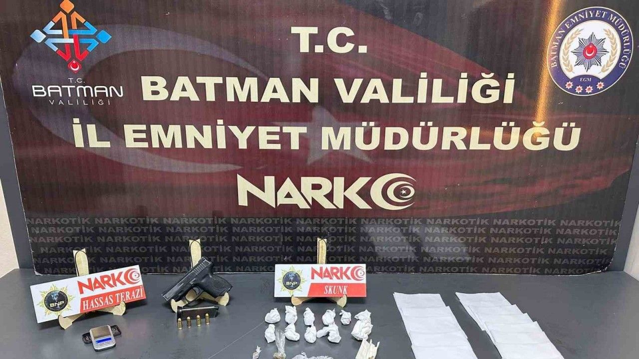 Batman Cumhuriyet Başsavcılığı koordinesinde İl Emniyet Müdürlüğü Narkotik Suçlarla Mücadele Şubesi ekiplerince yürütülen çalışmalarda, torbacılık yöntemiyle uyuşturucu madde ticareti yaptıkları tespit edilen şahıslara yönelik operasyon düzenlendi. Yapılan aramalarda 27,53 gram skunk, bir adet hassas terazi, bir adet 7.65 milimetre çapında ruhsatsız tabanca, tabancaya ait bir şarjör ve dört fişek ele geçirildi. Gözaltına alınan 2 şüpheli, emniyetteki işlemlerinin ardından sevk edildikleri adli makamlarca tutuklanarak cezaevine gönderildi.