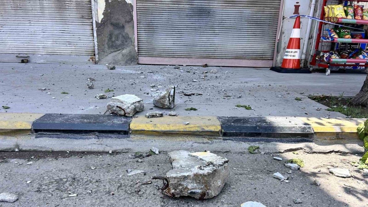 Hatay’ın İskenderun ilçesinde, eski bir binadan kopan taş parçaları kaldırıma düştü. Olayda yaralanan olmazken, zabıta ekipleri çevrede güvenlik önlemi aldı.