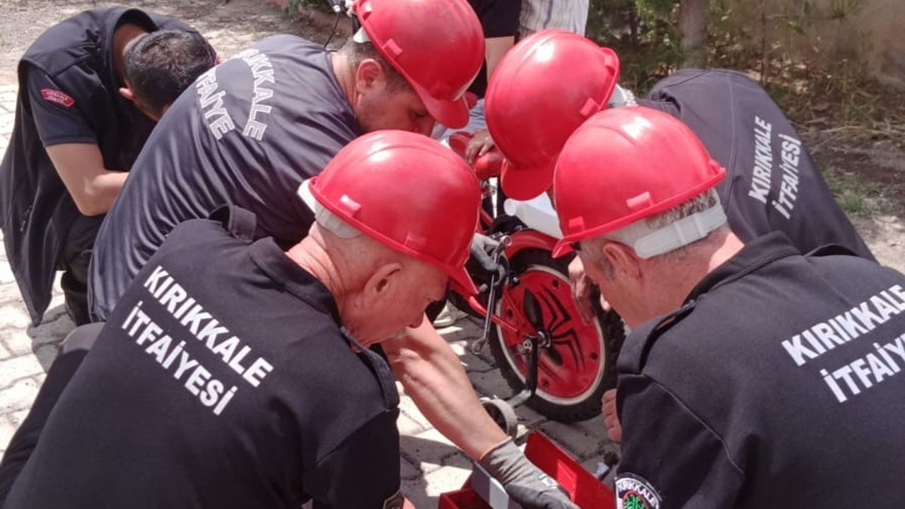 Kırıkkale’de bisiklet sürerken pedal kısmına ayağı sıkışan 8 yaşındaki çocuk, itfaiye ekiplerinin müdahalesiyle kurtarıldı.