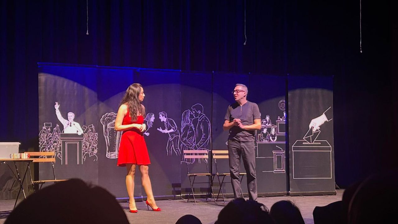 Tüm koltukların dolduğu gecede, oyuncular Merve Sevi ve Barbaros Uzunöner, performanslarıyla izleyicilere keyifli anlar yaşattı. Kahkaha dolu anlara sahne olan oyunda, hayata tamamen farklı açılardan bakan bir kadın ile bir erkeğin yollarının kesişmesiyle ortaya çıkan “evlilik koalisyonu” mizahi bir dille anlatıldı.