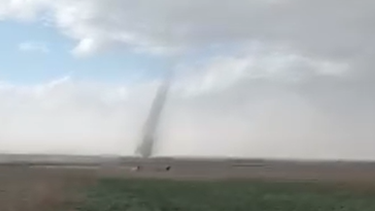 Vatandaşlar tarafından cep telefonuyla kaydedilen görüntülerde, hortumun tarım arazileri üzerinde ilerlediği ve gökyüzüne doğru yoğun bir toz bulutu oluşturduğu görüldü.