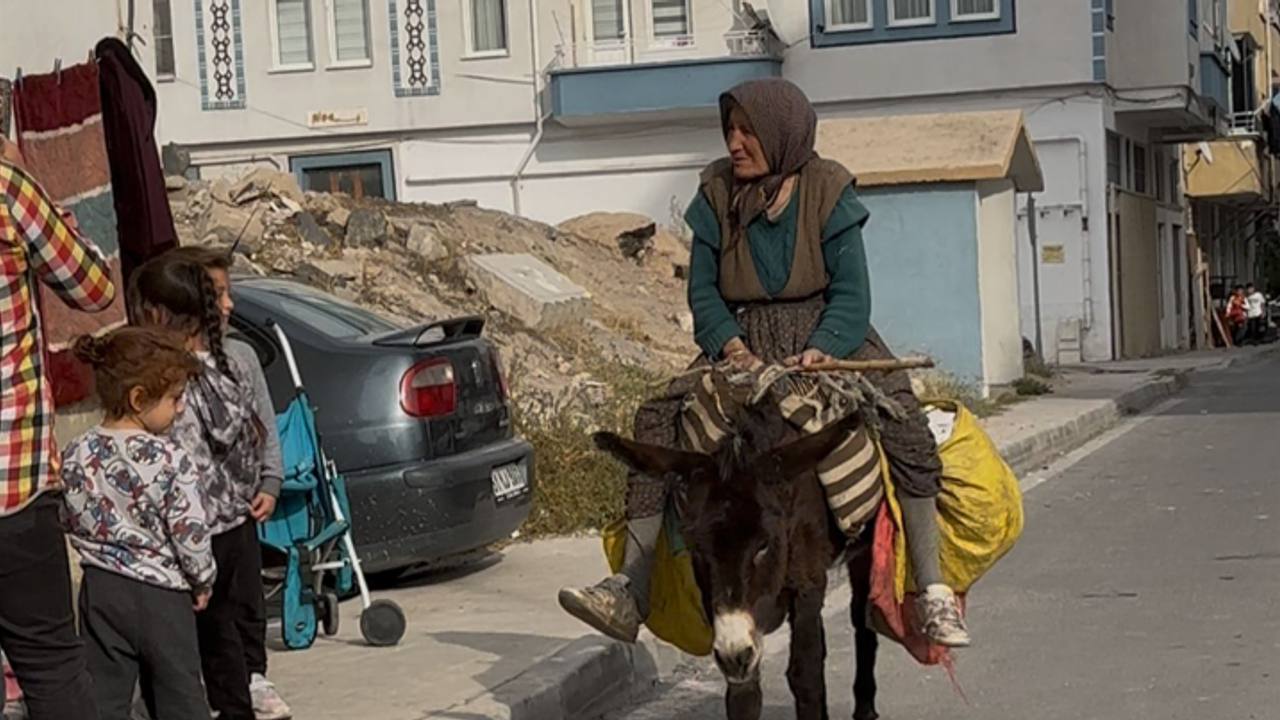 Teknolojik cihazları kullanmakta zorlanan kadın, tüm işlerini eşeğiyle yapıyor. İlçe merkezinde eşeğiyle ilerleyen kadın, çevredekilerin dikkatini çekerken, vatandaşlar bu görüntünün ilçede nostaljik bir atmosfer oluşturduğunu belirtiyor.