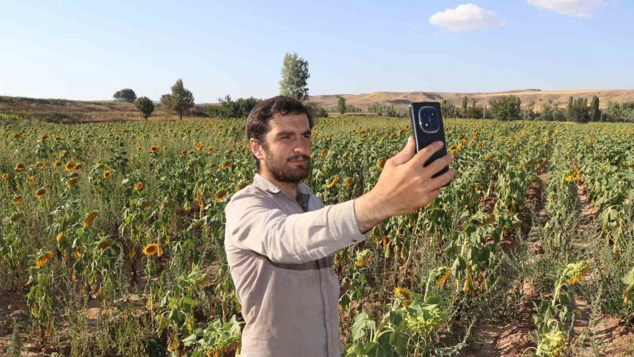 Ferhat Koç ise tarlaların görsel bir şölen oluşturduğunu söyleyerek, "Burada 300 dönüm ve karşı tarafta da yaklaşık 350 dönüm olmak üzere ay çekirdeği üretimi yapmaktayız. Aynı zamanda yağlı çekirdek üretimimiz de var. Hasada gün sayıyoruz ve inşallah başlayacağız. Yaklaşık 1 ay kaldı. Önceden el ile dikilip sapına dikilip ve kurutulup işçi ile toplanıyordu. Şimdi tek seferde hasadı biçerdöverle yapıyoruz. Burası görsel şölen oluyor dış çekim için gelenler de oluyor" dedi.