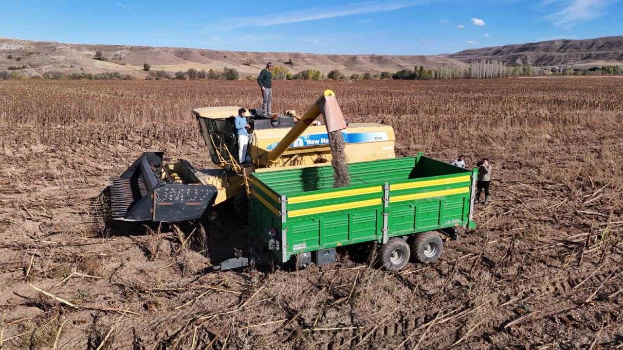 Sivas’ta ilkbahar aylarında toprakla buluşan ayçiçeklerin hasadı başladı. Verimin yüksek olması çiftçinin yüzünü güldürürken, rekoltenin yüksek olması bekleniyor.