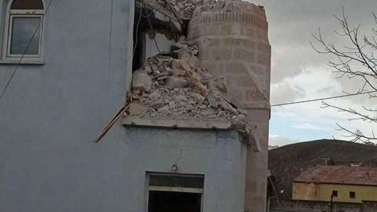 Cami minaresi şiddetli rüzgardan yıkıldı