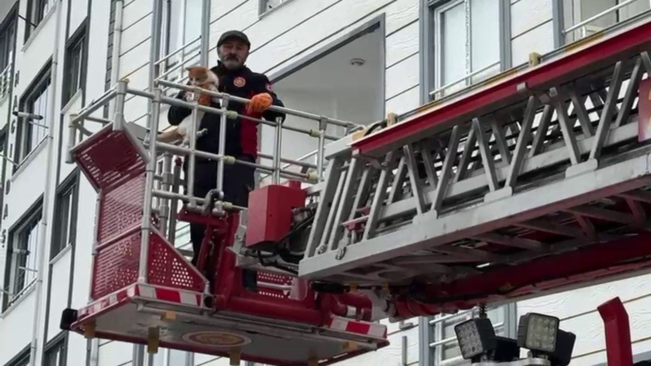 Ardahan'da bina çatısında mahsur kalan kedi itfaiye ekiplerince kurtarıldı.