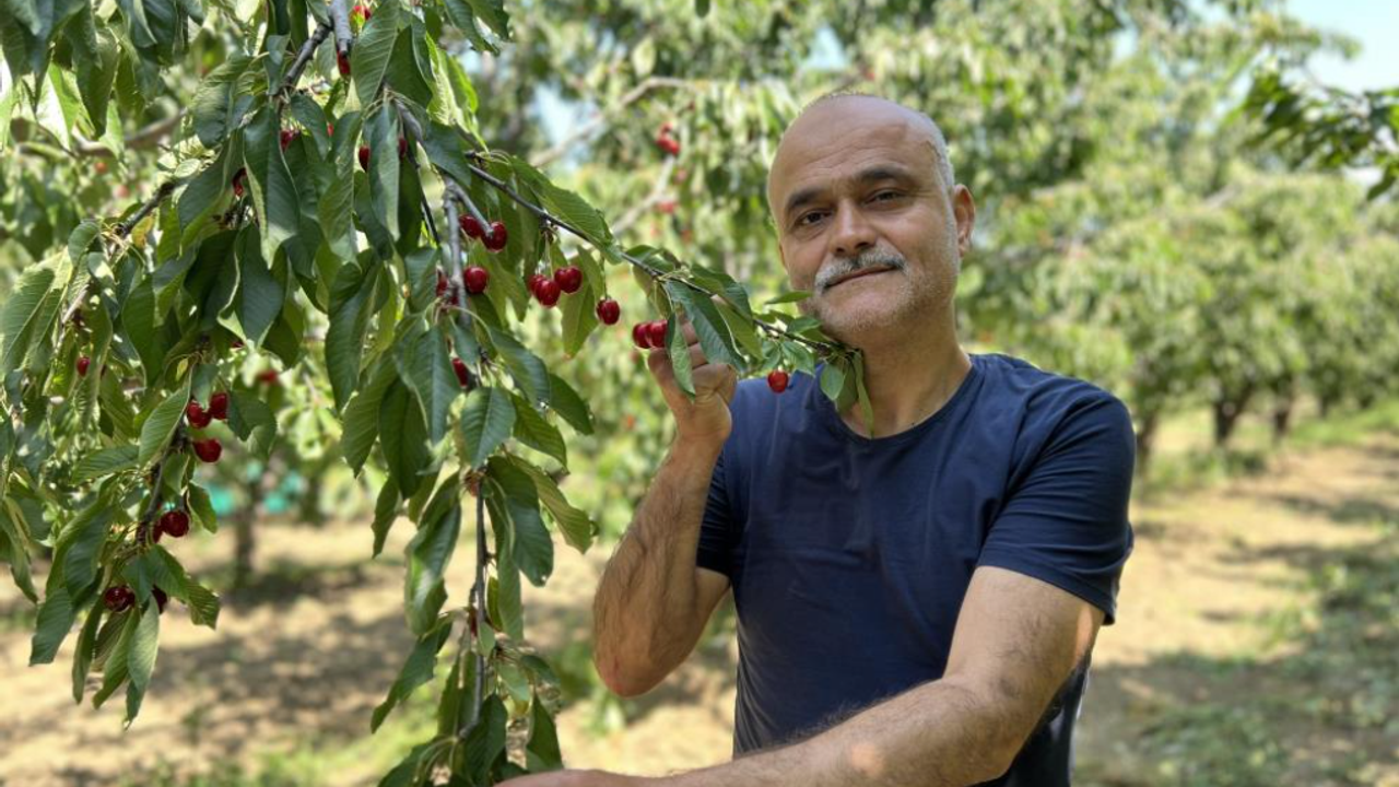 Çay bardağına sığmayan dev kirazda hasat zamanı