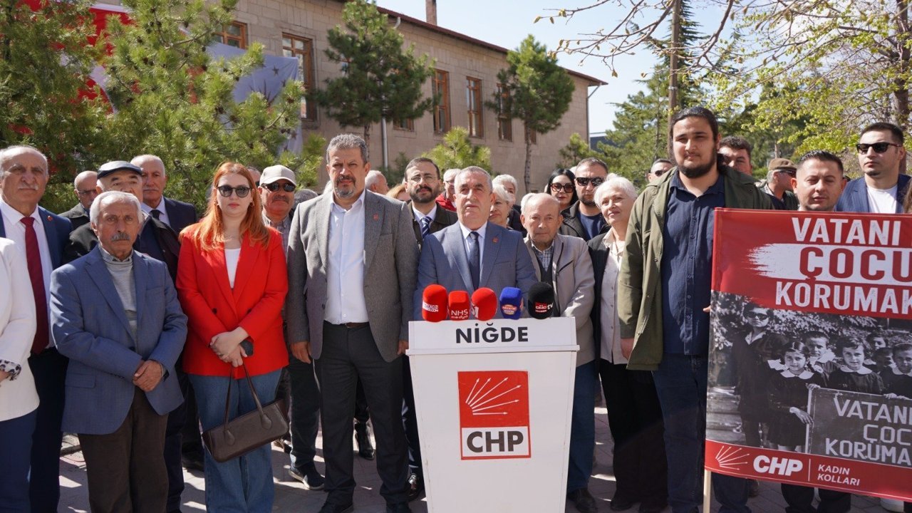 Niğde’de, Cumhuriyet Halk Partisi (CHP) İl Başkanlığı tarafından İl Milli Eğitim Müdürlüğü önünde 23 Nisan Ulusal Egemenlik ve Çocuk Bayramı dolayısıyla basın açıklaması yapıldı.