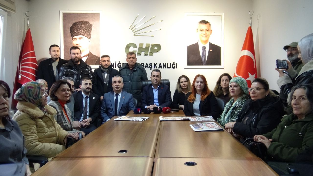 CHP Niğde İl Başkanlığında düzenlenen açıklamaya,CHP Parti Meclisi Üyesi Erhan Adem, CHP Niğde İl Başkanı Bünyamin Kıvrakdal, Avukat Hulus Özen ve parti üyeleri katıldı.