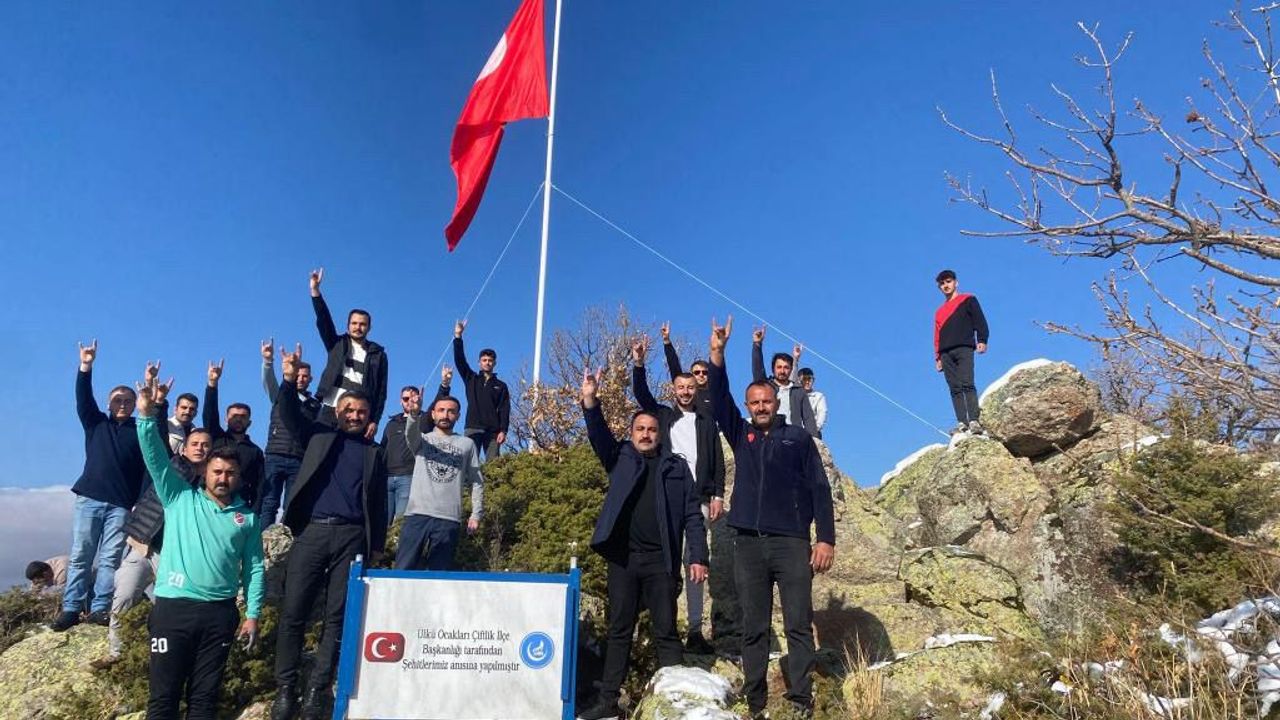 Niğde’nin Çiftlik ilçesinde Ülkü Ocakları üyeleri, şehitler anısına 1918 rakımlı Çiftlik–Altunhisar yolu üzerindeki Dede Dağı’nın zirvesine Türk bayrağı dikerek mermer anıt yaptı.