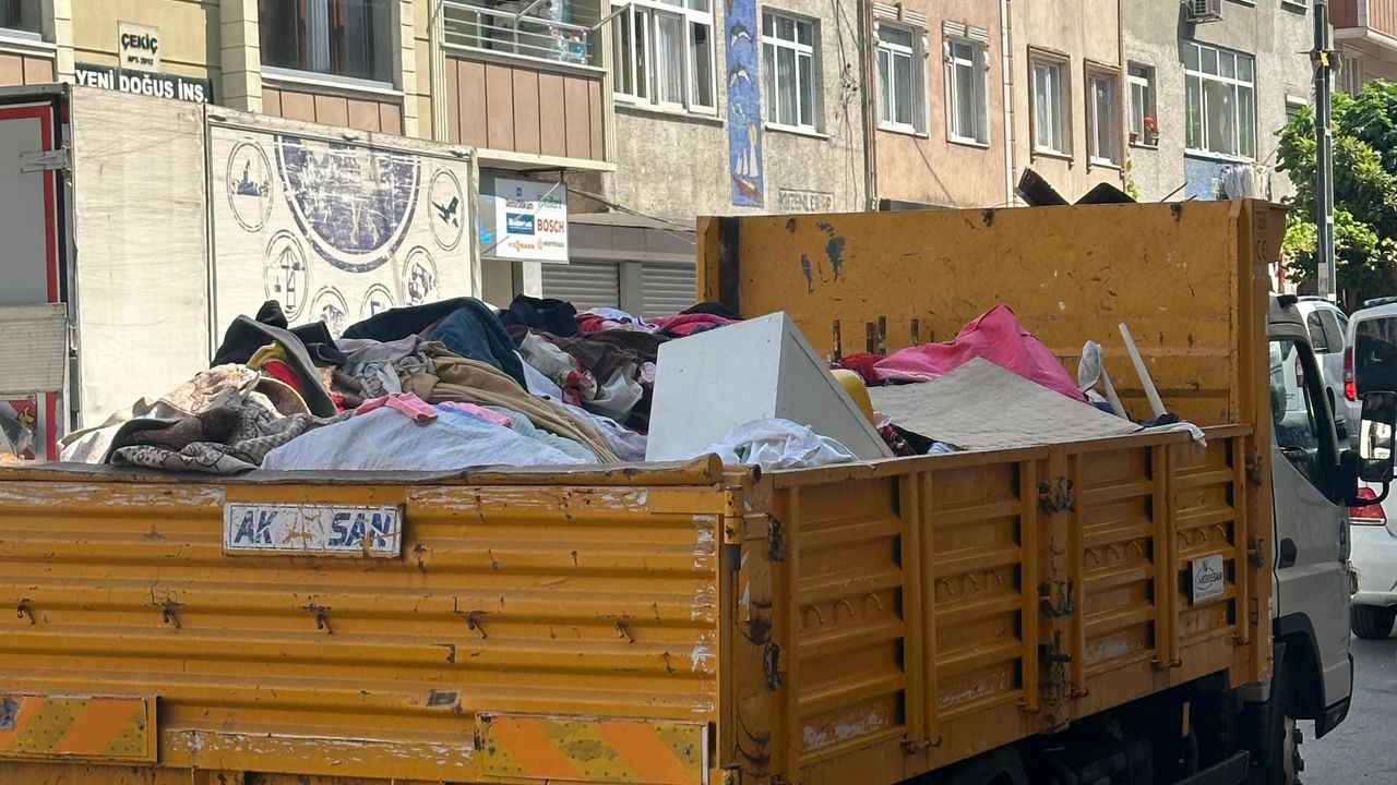 İstanbul Eyüpsultan'da 4 kişilik bir ailenin yaşadığı evden yayılan kötü koku ve ortaya çıkan böcekler apartman sakinlerini isyan ettirdi. Ekipler, biriken çöpleri daireden çıkararak kamyonlarla tahliye etti.