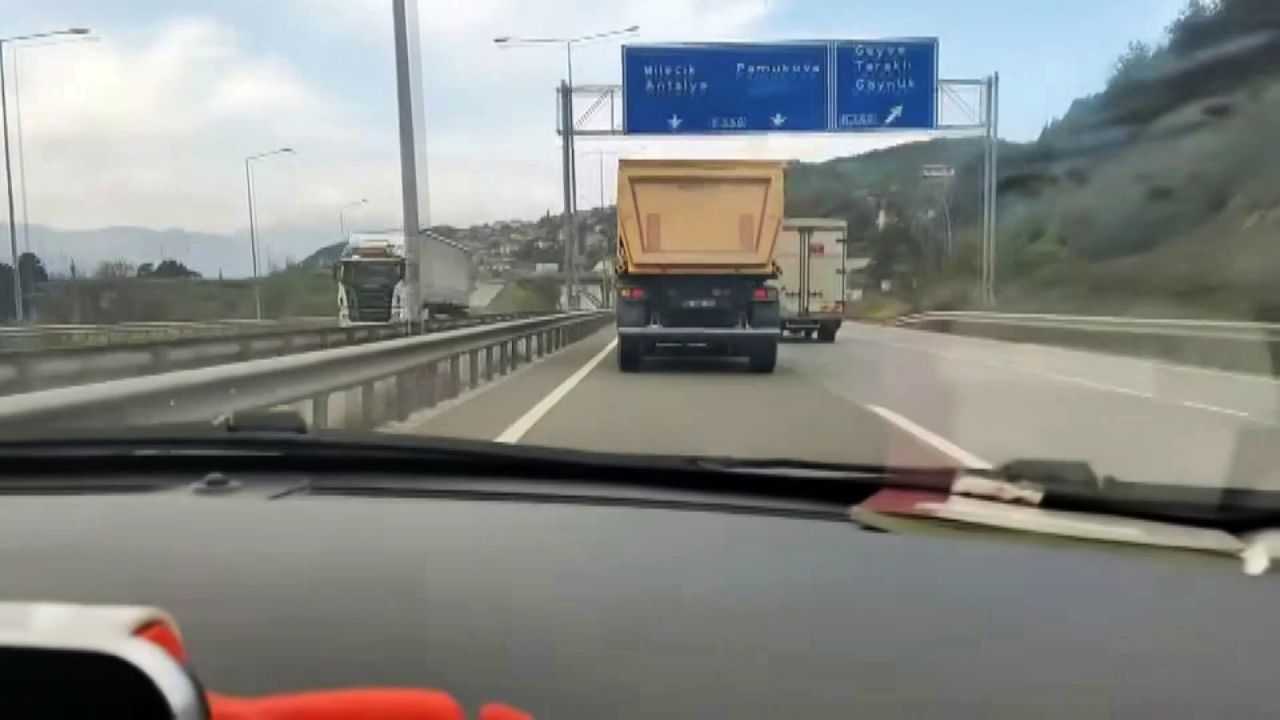 Sakarya’nın Geyve ilçesi D-650 kara yolunda bir otomobil sürücüsü 139 kilometre hızla gitmesine rağmen kamyona yetişemedi. Hız limitini aşan kamyonun tehlikeli yolculuğu cep telefonu kamerasına yansıdı.