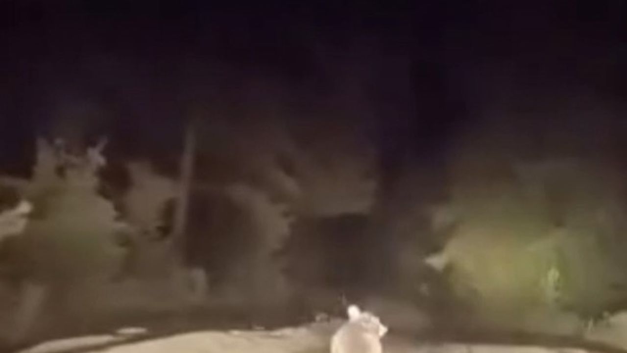 Bursa’nın Karacabey ilçesinde dağ yolundan ilerleyen bir sürücü patika yolda ayıyla karşılaştı. Aracı gören ayı panikle kaçmaya baladı. Bir süre patika yoldan ilerleyen ayı, ormanlık alana girerek gözden kayboldu. Ayının kaçış anları, sürücünün cep telefonu kamerasına saniye saniye yansıdı.