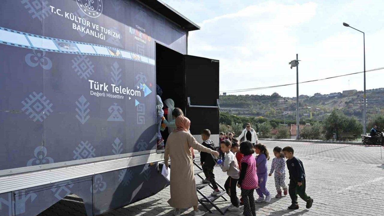 Manisa’nın Demirci ilçesinde Kültür ve Turizm Bakanlığı’na ait Gezen Sinema Tırı, merkez ve kırsal mahalleleri ziyaret ederek çocuklara unutulmaz bir sinema keyfi yaşattı.