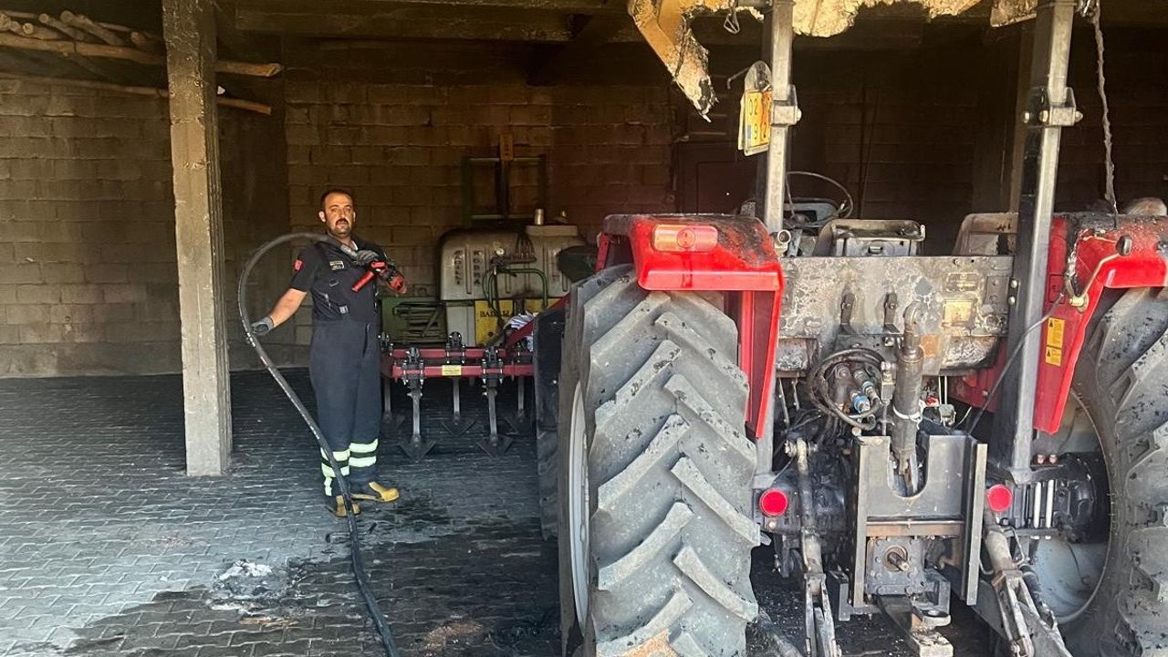 Adıyaman’da depoda bulunan bir traktör alev alarak yandı.