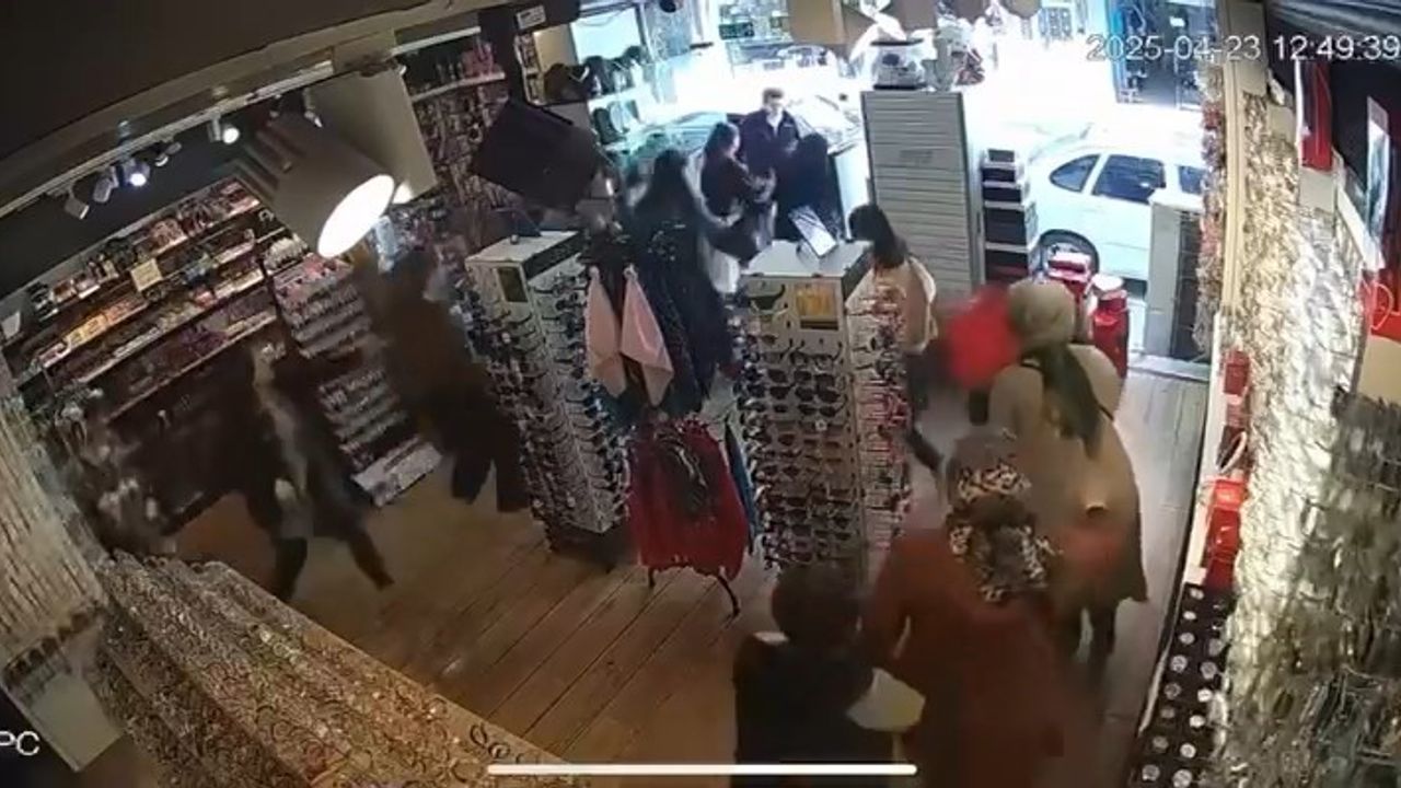 Güvenlik kameralarına yansıyan görüntülerde Bursa merkezde bir avize dükkanında deprem anında tavandaki avizelerin hepsini aynı anda sallanması dikkat çekerken, bijuteri dükkanında takı beğenen kadınların depremle birlikte ellerindeki ürünleri bırakıp hep birlikte kapıya doğru kaçmaları görülüyor.