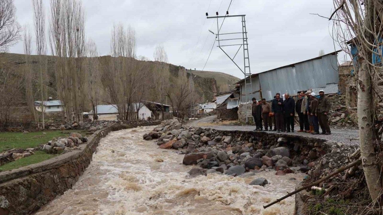 Erzurum’un Oltu ilçesinde etkili olan sağanak yağış ve eriyen kar suları nedeniyle Dümbüllü Deresi taştı.