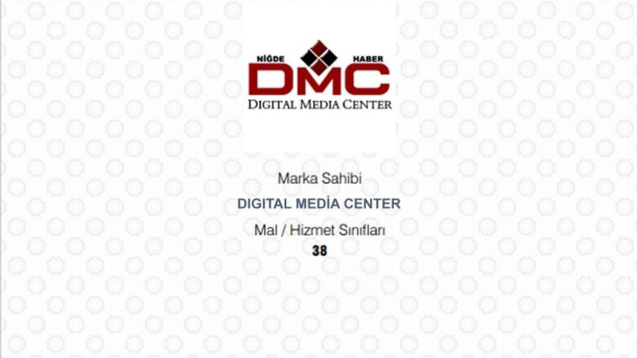 Niğde'nin dünyaya açılan markası 'DMC HABER' Türk Patent Marka Tescil Belgesi aldı.