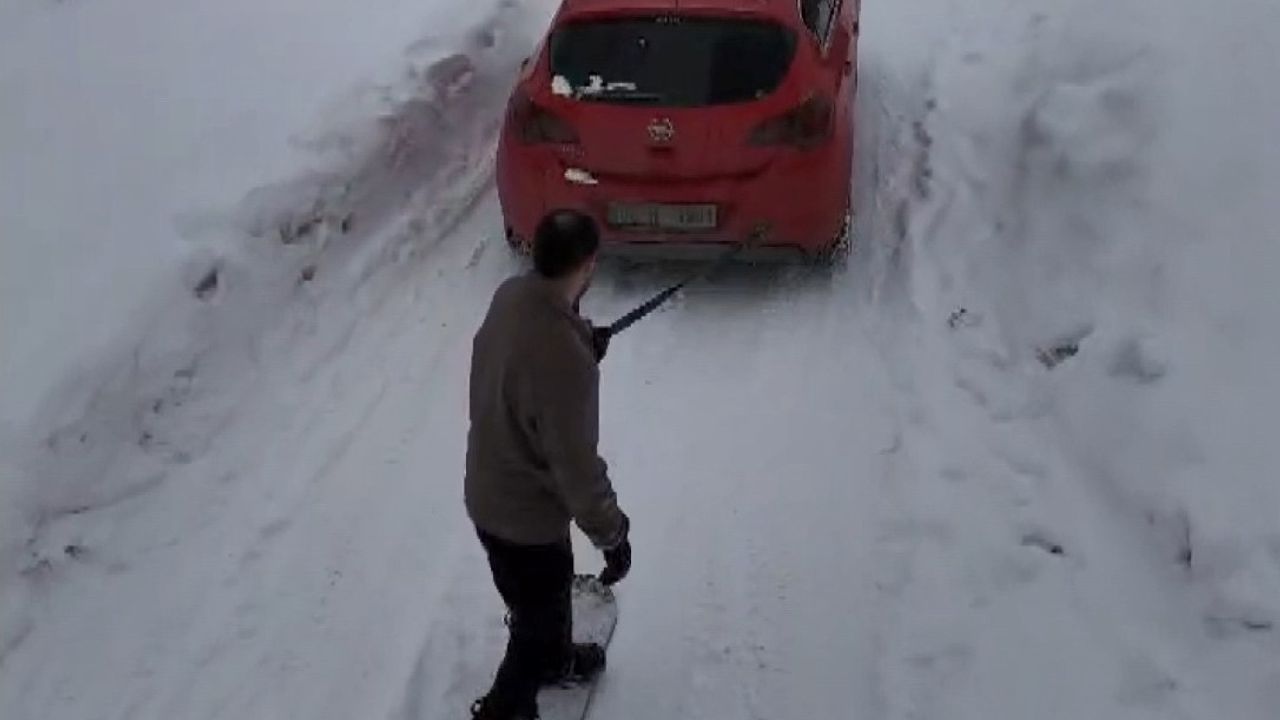 Doktor Süre’nin snowboard yaptığı anlar ise aynı ilçede sağlık personeli olan Rıdvan Aktemur tarafından dron ile kayda alındı. Kaydedilen görüntülerde Doktor Süre’nin sokaklarda snowboard yaptığı ve bir otomobilin halat yarımıyla kendisini çektiği anlar yer alıyor.