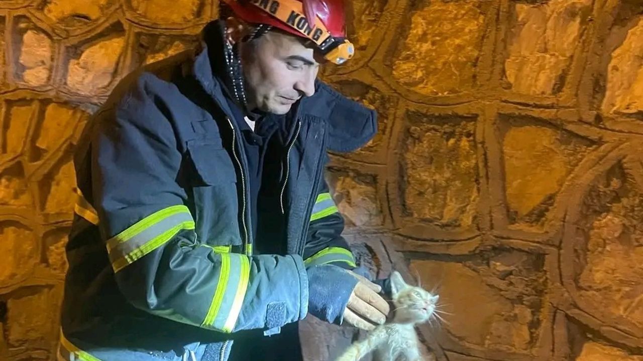 Hatay’ın Antakya ilçesinde duvar arasına sıkışan yavru kedi itfaiye ekipleri tarafından kurtarıldı.