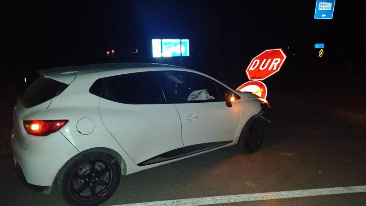 Ehliyetsiz ve alkollü sürücünün kullandığı aracın 'Dur' levhasına çarpması sonucu meydana gelen trafik kazasında 1 kişi yaralandı.