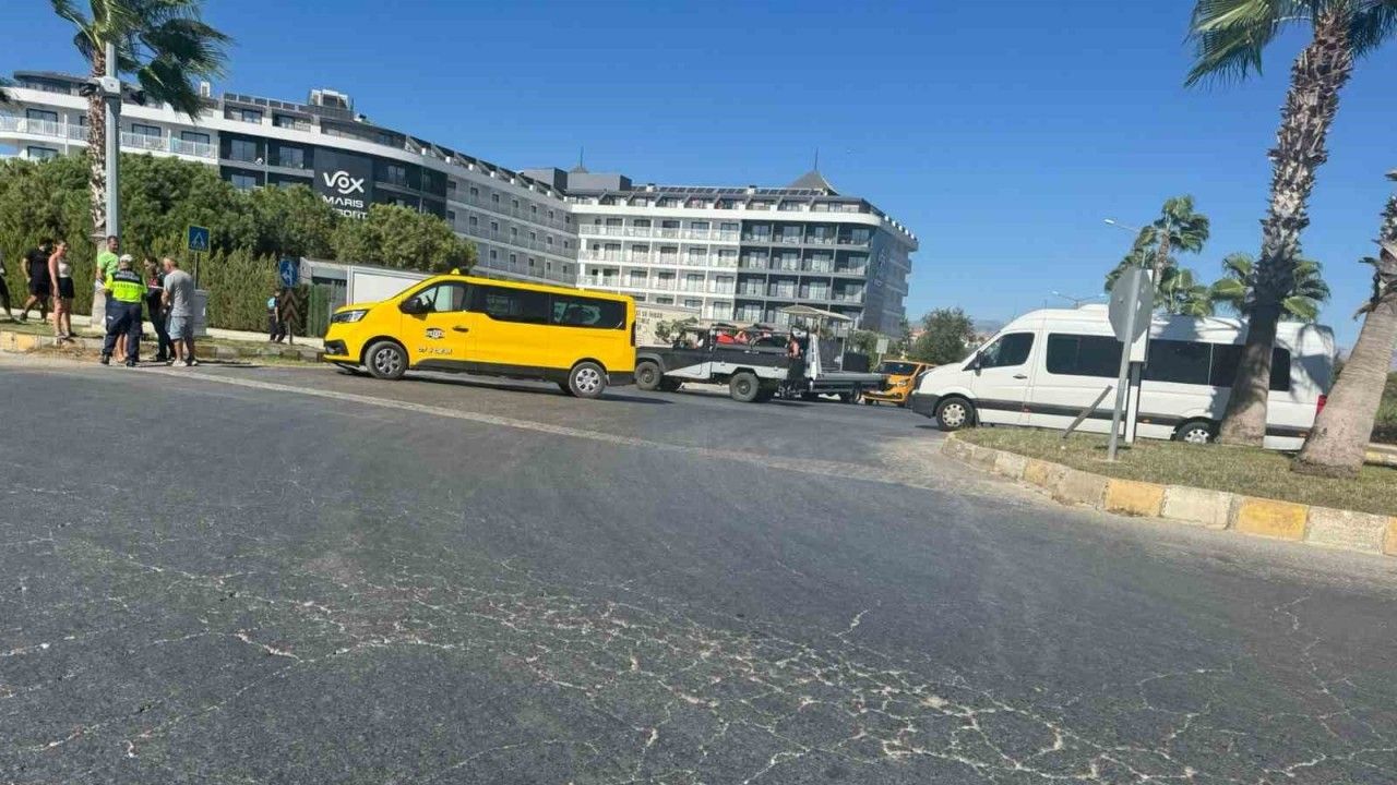 Kaza; Manavgat ilçesi Side Mahallesi Fatih Sultan Mehmet Bulvarında meydana geldi. Edinilen bilgiye göre, bulvar üzerinde seyir halindeki Abdil İ.’nin kullandığı 07 J 0235 plakalı ticari taksi, Almanya uyruklu Marlıes Barth H.’nin kullandığı 07 MB 4614 plakalı 3 tekerlekli elektrikli bisiklete çarptı. Kazada elektrikli bisikleti kullanan Marlies Barth H. ile motosiklette yolcu olarak bulunan Alman uyruklu Ingeborg Zirgler S. ve Sabine Haas P. yaralandı. 112 sağlık ekiplerinin olay yerindeki müdahalelerinin ardından ambulansla Side Özel Anadolu Hastanesi’ne kaldırılan yaralılardan hayati tehlikeleri bulunduğu belirlenen Marlies Barth H. ve Ingeborg Zirgler S. Antalya merkezde bulunan özel bir hastaneye sevk edildi.