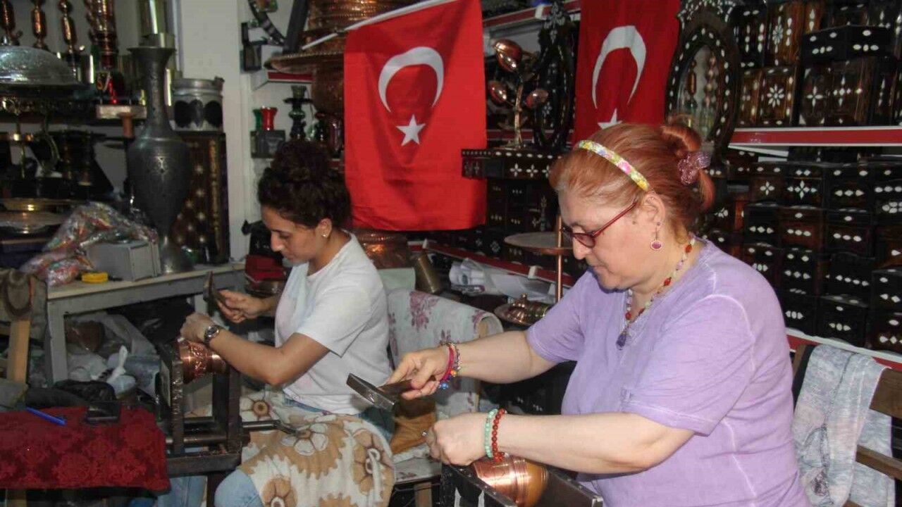 Gaziantep’te asırlardır hassas ve ince işçiliği nedeniyle genellikle erkekler tarafından yapılan bakır işlemeciliğinde usta olan Sibel Bakırcı ve Seda Çetin, "Bakırcılık erkek işidir, kadınlar bu işi yapamaz" diyenlere inat 10 yıldır bakıra şekil veriyorlar.