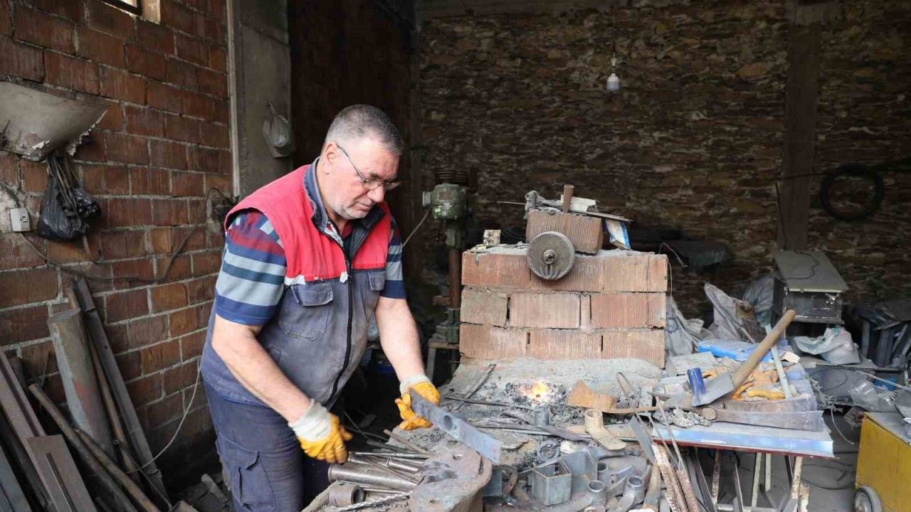 Aydın ve İzmir’in verimli dağlarında tarım işleri halen eski usul el aletleri ile sürdürülünce bölgede parmak sayısına geçmeyecek kadar azalan demirci ustaları zamanla yarışmaya başladı. Aydın’ın Köşk ilçesi ile İzmir’in Ödemiş ilçesi arasında kalan Mendegüme’de demircilik yapan İbrahim Pehlivan, 35 yıllık meslek hayatının en yoğun günlerini yaşıyor.