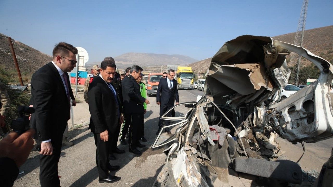 Hatay’da freni arızalanan kamyon, ışıkta bekleyen 8 araca çarparken kazada 4 kişi yaralandı. Vali Mustafa Masatlı da kaza alanında incelemelerde bulundu.
